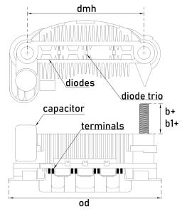 12V; 8 diodes, Dist. mount. holes, mm:75.00MI; TSUBISHI Colt 2008- MITSUBISHI Lancer 2008-, SMART Forfour; СМОТРИ CARGO 235266